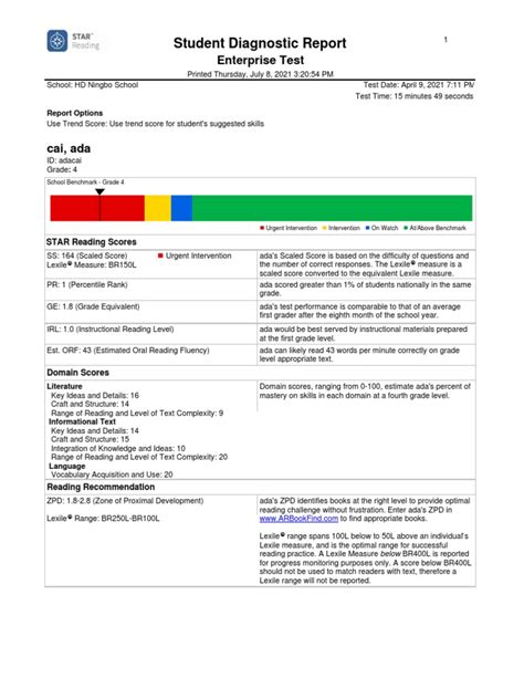 Read Online student diagnostic report enterprise test iBooks ManyBooks